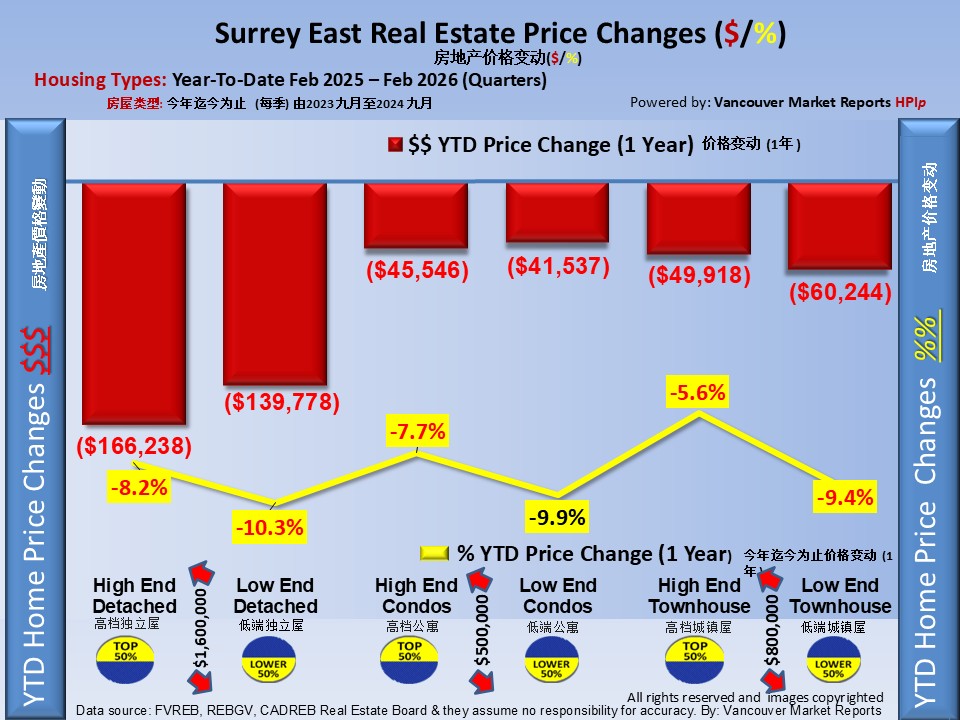 History: The Surrey East Year-To-Date Home Price Index HPIp (Top 50%) shows that prices decreased $209,538.